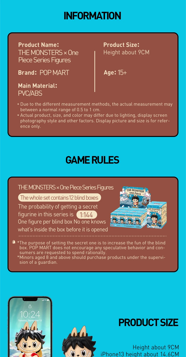 | Box Type | RORONOAZORO, MONKEY D LUFFY, USOPP, NAMI, 1 Blind Box, 12 Confirm Style, 12 Blind Boxs, JINBE, BROOK, TRAFALGAR LAW, SABO, TONY TONY CHOPPER, SANJI, FRANKY, NICO ROBIN, HIDDEN |