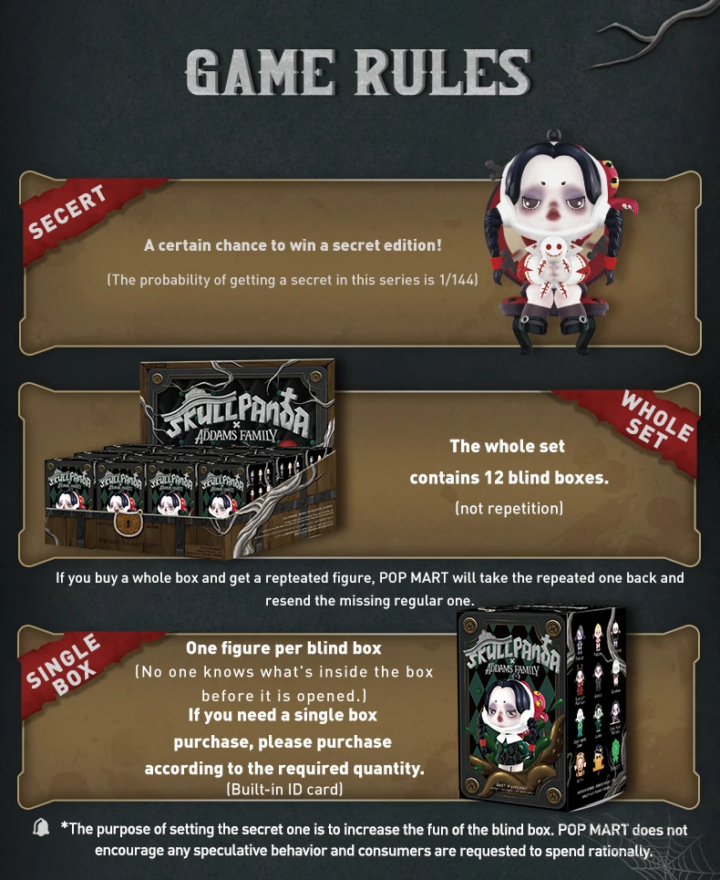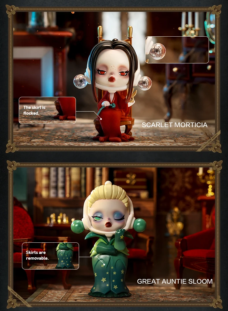 Enter the spooky world of the Addams Family with Skullpanda! Each mystery box features a darkly stylish figure—perfect for fans of gothic charm and collectible art.
